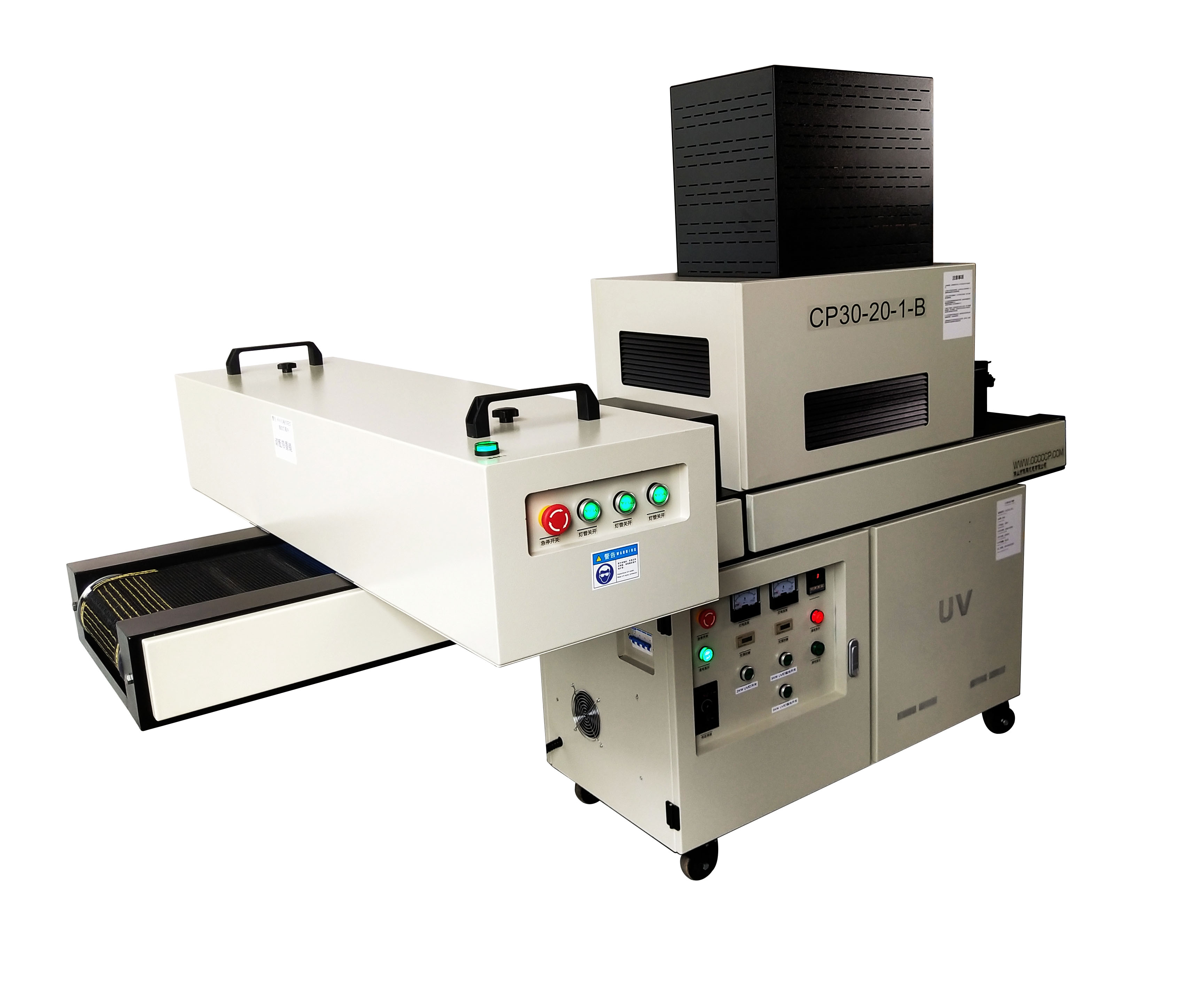 本機為單面固化UV機,采用悠著點額UV燈管